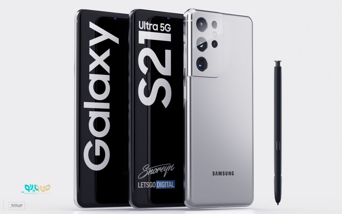 گوشی Galaxy S21 Ultra یک غول فناوری در دنیا و عصر دیجیتال تا به امروز می باشد. این محصول جدید شرکت سامسونگ با امکاناتی که به کاربر خود ارائه می دهد. تحسین بسیاری از کاربران را به دنبال داشته است. طراحی جدید و منحصر بفردی دارد. به صورتی که دیگر خبری از بیرون زدگی لنز دوربین ها نیست یک قاب از کنار فریم تا وسط های گوشی با همان رنگ قاب پشتی دوربین ها را در خود جا داده است که این طراحی زیبا و متفاوت باعث شده است که میزان بیرون زدگی لنزها به طور چشمگیری کاهش یابد. جس بدنه قاب پشتی و جلو از شیشه بوده و فریم آن آلومنیومی می باشد.در این گوشی از فناوری ویکتوس استفاده شده است، که سامسونگ ادعا کرده است تا ارتفاع 2 متر در مقابل ضربه محکم می باشد همچنین از IP68 نیز پشتیبانی می کند و در عمق 1.5 متری به مدت 30 دقیقه در مقابل نفوذ آب مقاوم می باشد. وزن گوشی 229 گرم می باشد، البته با این امکانات و داشتن باتری قوی قابل قبول می باشد.با اینکه گوشی سنگین می باشد. اما بسیار خوش دست و استفاده از آن راحت می باشد.شاید به دلیل طراحی زیبا و جدید این گوشی باشد.می توان گفت که به طراحی این پرچم دار هیچ ایرادی نمی توان گرفت. صفحه نمایش، این گوشی یکی از بهترین صفحه نمایش های ارائه شده تا به امروز است که رقیب خود آیفون 12 پرو مکس در مقابل آن واقعا کم آورده است؛ یک صفحه نمایش با فناوری Dynamic AMOLED 2X،اندازه 6.8 اینچ،رزولوشن (3200 × 1440) WQHD ،تراکم پیکسلی 515 پیکسل در هر اینچ،نسبت صفحهنمایش به بدنه 89.8 درصد می باشد. که مقاوم در مقابل گرد وخاک،ضربه و نفوذ آب می باشد.میزان نور این صفحه نمایش بیشترین حد ممکن تا به امروز است که 1500 نیت با نرخ تازه سازی 120 هرتز می باشد. که نمایش محتوا در هر شرایطی فوق العاده عالی و رنگ ها زنده و طبیعی است.عمق رنگ مشکی فوق العاده و کیفیت تصاویر نمایشی عالی می باشد.این صفحه نمایش از قلم S-pen نیز پشتیبانی می کند. که با کمک آن می توان طراحی و یکسری کارهای ظریف لمسی را انجام داد. پردازنده استفاده شده جدیدترین تراشه شرکت کوالکام می باشد که اسنپ دراگون 888 می باشد. که این تراشه جدیدا سر و صدای زیادی در دنیای فناوری به پا کرده است. این تراشه فوق سریع با طراحی 5 نانومتری و فناوری 5G همراه با رم های 16،12 گیگابایت, ظرفیت حافظه 128،256،512 گیگابایت به همراه پردازنده Mali-G78 MP14 ارائه شده است،که انجام کلیه کارها ،سنگین،برنامه های سنگین ،بازی ها با گرافیک بالا به راحتی و بدون کوچکترین مشکل اجرا می کند.و همچنین مصرف انرژی آن نیز بهینه شده است. اما متاسفانه در این گوشی خبری ازشیار کارت حافظه نیست!دوربین های بخش مهم هر گوشی همراه که تمامی برندها بر سراین قسمت رقابت شدیدی دارند به طوری که امروزه مهمترین بخش هر گوشی همراه شده است.بهترین دوربین های شرکت سامسونگ بر روی این پرچم دار پیاده سازی شده ،لنزهای قدرتمند همراه با بهترین امکانات و داشتن بهترین زوم که در صورت استفاده از آن کیفیت و جزییات تصاویر عالی ثبت می شود، به طوری که 2 دوربین اصلی قابلیت زوم دارند که یکی زوم دو برابری و دیگری زوم 10 برابری اپتیکال می باشد.دوربین 4 گانه اصلی در پشت قاب گوشی با چیدمانی خاص و جدید که سنسور اصلی از نوع عریض 108 مگاپیکسل،سنسور دوم 10 مگاپیکسل،سنسور سوم از نوع تله فوتو 10 مگاپیکسل ، سنسور چهارم 12 مگاپیکسل و دوربین سلفی 40 مگاپیکسل می باشد. که دوربین ها مجهز به لرزشگیر اپتیکال بوده که در حین فیلم برداری با حرکت کردن نیز می توان فیلم های با کیفیتی را ثبت کرد.عکسهای ثبتی با این دوربین ها فوق العاده بوده و خاطرات ما را به بهترین حالت ممکن ثبت می نماید.تصاویر سلفی نیز فوق العاده با کیفیت می باشد. از جمله ویژگی که این دوربین را از سایر رقبای خود متمایز می کند زوم این دوربین است که به آن زوم فضایی نیز گفته می شود.همچنین دارای فوکوس خودکار دوگانه بوده که به طور سریع سوژه را تشخیص می دهد. سیستم عامل پیاده سازی شده اندورید 11 می باشد با رابط کاربری One UI 3.1 و امکانات فوق العاده از جمله حالت Adaptive صفحه نمایش